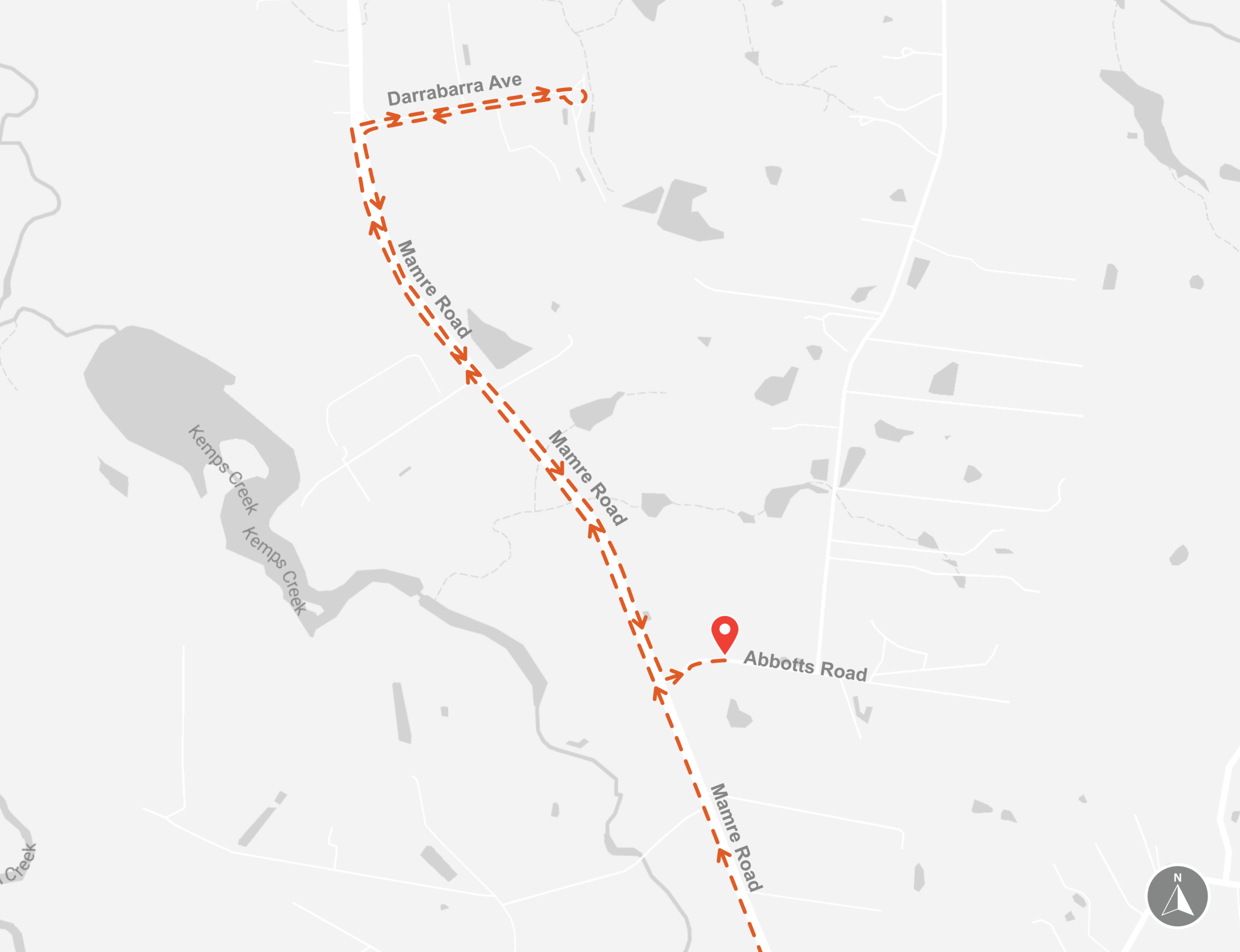 - Continue northbound on Mamre Road past Abbotts Road to Darrabarra Avenue.
